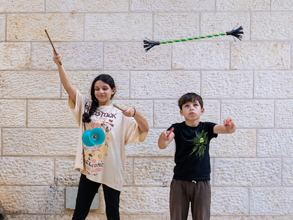 'עכשיו תורך!' - ההזדמנות שלכם להתנסות במגוון מיומנויות וכלים מעולם הקרקס - ללהטט, להקפיץ דיאבולו ולשמור על איזון.