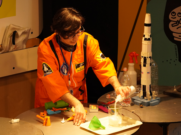 האם תהיתם כיצד משגרים חלליות וטילי ענק לחלל או מה הקשר בין מים וטיסה של חלליות לירח? בהדגמה מדעית מפתיעה בהשתתפות הקהל יוכלו המבקרים לגלות פרטים מפתיעים בדגם של החללית המאוישת שהגיעה לירח, להעיף בלונים מיוחדים ולשגר טילים מפתיעים!