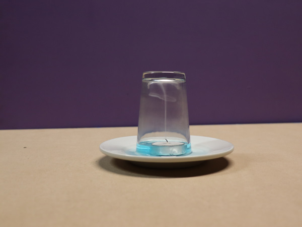 Wait and watch: What is happening to the candle? What is happening to the water?